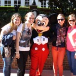 four girls standing outside with mickey mouseFour TCNJ Communication Studies students presented refereed papers at the most recent annual conference of the National Communication Association (NCA) in Orlando.  From left: Kristen Kiernicki (’09), seniors Caroline English, Michelle Davies, and Amy Wilson.
