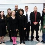 Chessea Cortese [winner], Ariel Bliss, Kacie Miller, Barry McCommon [judge], Rosalind Erwin [judge], Justin Neitzer, Manny Martinez [runner-up] and Patricia Giangiulio [judge]. MISSING: Jacob Carino.On Saturday January 26, six members of TCNJ Concert Band – including one non-music major – competed in the ensembles first Solo Competition. The judges were TCNJ Adjunct Professor Rosalind Erwin plus two outside judges: Barry McCommon and Patricia Giangiulio. The winner by unanimous vote was flutist Chelsea Cortese, junior, Music Education, who will perform Thom Ritter George’s Concerto for Flute with TCNJ Concert Band on April 18, 2013. Runner-up was saxophonist Manuel Martinez, sophomore, Music Education.