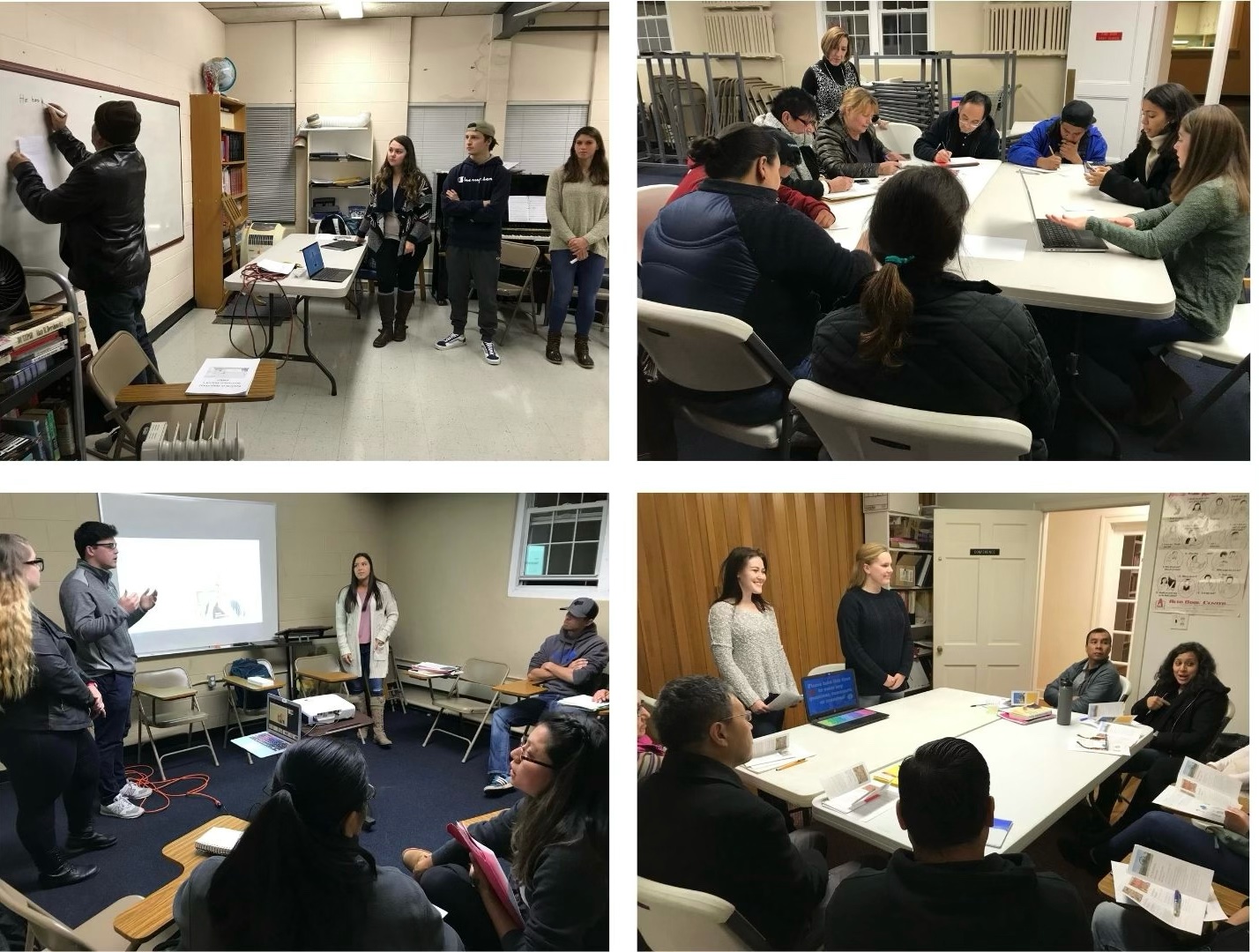 Meeting both Sam and Carlos prepared us well for our mini ethnographic studies. We were able to go in more conscious of implicit biases we may have had and other people’s opinions clouding our head. My group visited The English School a total of three times. That may not seem like enough, but honestly one would only have to spend ten minutes in one of their classrooms to have a clear picture of the school’s culture. It is one of the most accepting, compassionate, and supportive places I have ever had the privilege of going. This school is a family. The students come from all over the world and attend the school for various end goals, but one thing seemed to be similar for them all: they all wanted to feel connected to their communities. I hadn’t realized how isolating it could be for an immigrant when they first arrive in America. Even when they have their family here with them, they are ostracized from the larger community due to language barriers and the contentious debate on immigration. It is easy for them to feel unwanted here. That is why in my opinion, the most important thing The English School provides for their students is a tie to the community. The teachers and volunteers form genuine bonds with the students that many times become friendships that extend and last beyond the classroom.