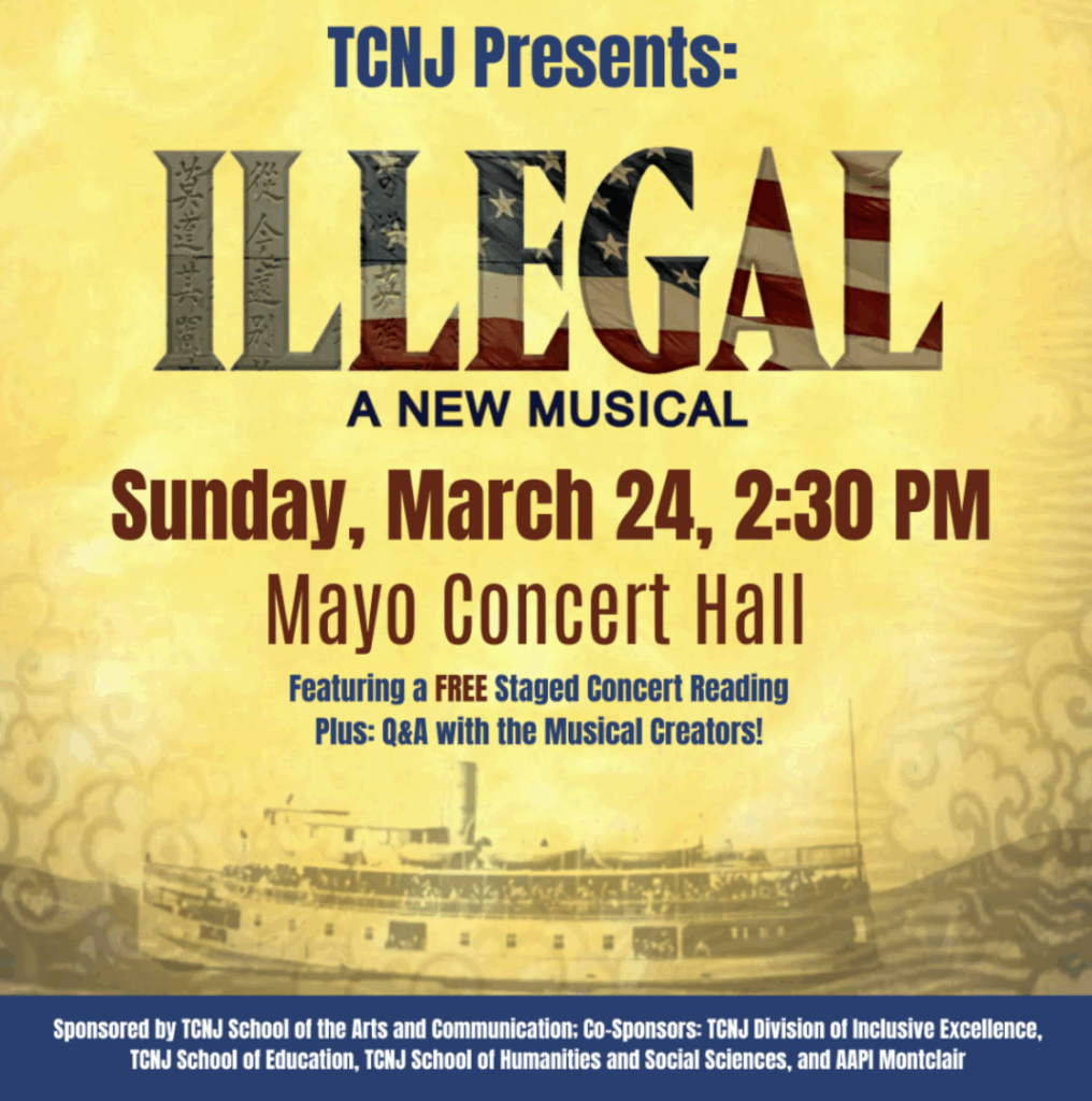 TCNJ will also welcome Illegal: A New Musical, a moving show about America’s earliest illegal immigrants, inspired by family secrets and poetry etched into the walls of Angel Island, where about one million immigrants were detained and inspected under the Chinese Exclusion Act of 1882.