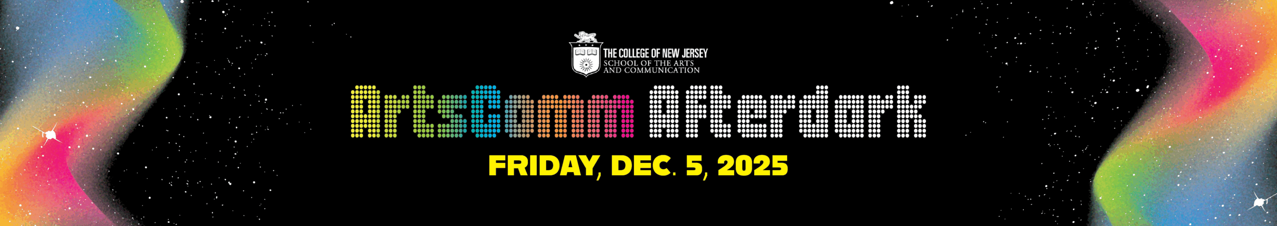 Each December, on the last day of classes, TCNJ School of the Arts and Communication opens its doors for ArtsComm After Dark, an evening of celebration. On Friday, Dec. 5, 2025, students, faculty, staff, and guests will have the opportunity to visit studios, galleries, performance spaces, and experience the creative work of students from the Departments of Art and Art Education; Communication, Journalism, and Film; Design and Creative Technology; and Music. Stay tuned for the event schedule and more details.